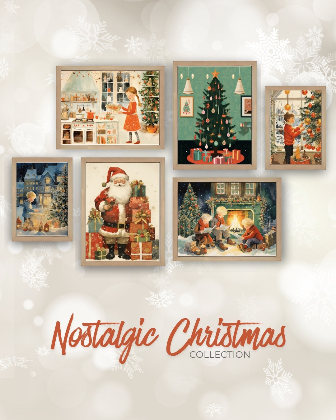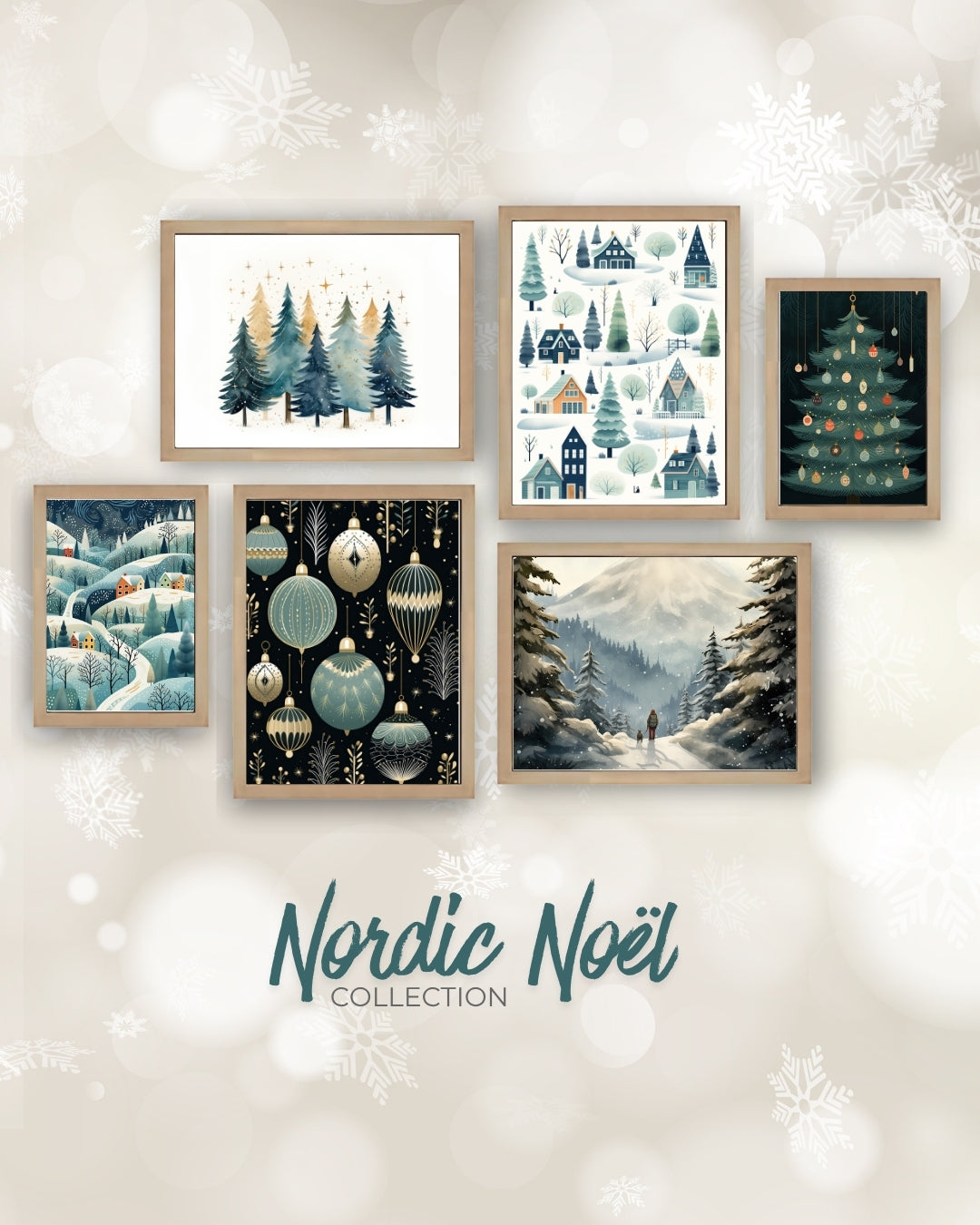 Nostalgic Christmas Collection og Nordic Noël Collection. Sammen forener de julens kontraster – det varme og tradisjonsrike med det rene, nordiske uttrykket.Her finner du kunstplakater og plakatpakker som sprer julestemning, eleganse og ro – skapt for å gi hjemmet ditt en lun og inspirerende vinteratmosfære.