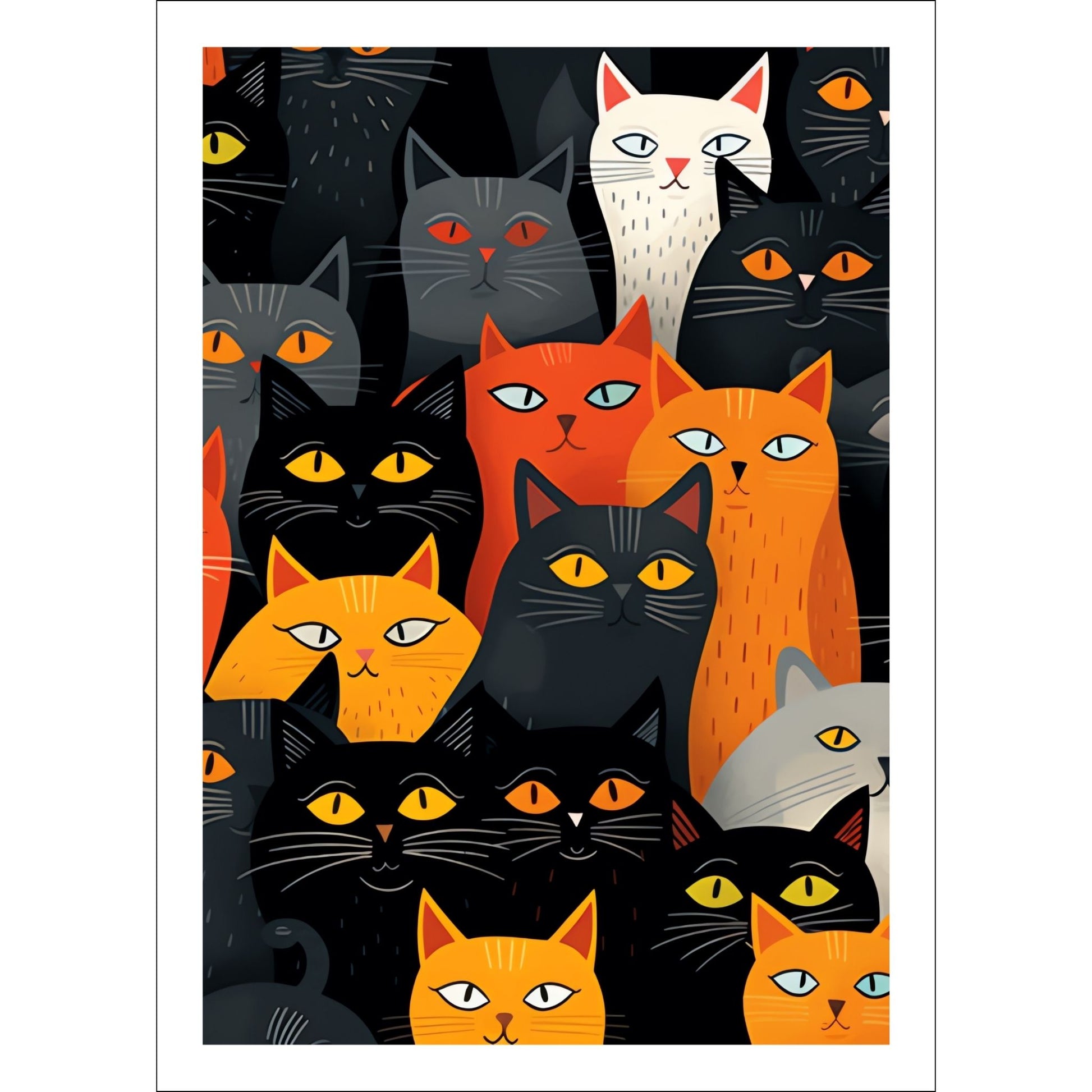 Cat Group Plakat og Lerret – Unik Grafisk Illustrasjon