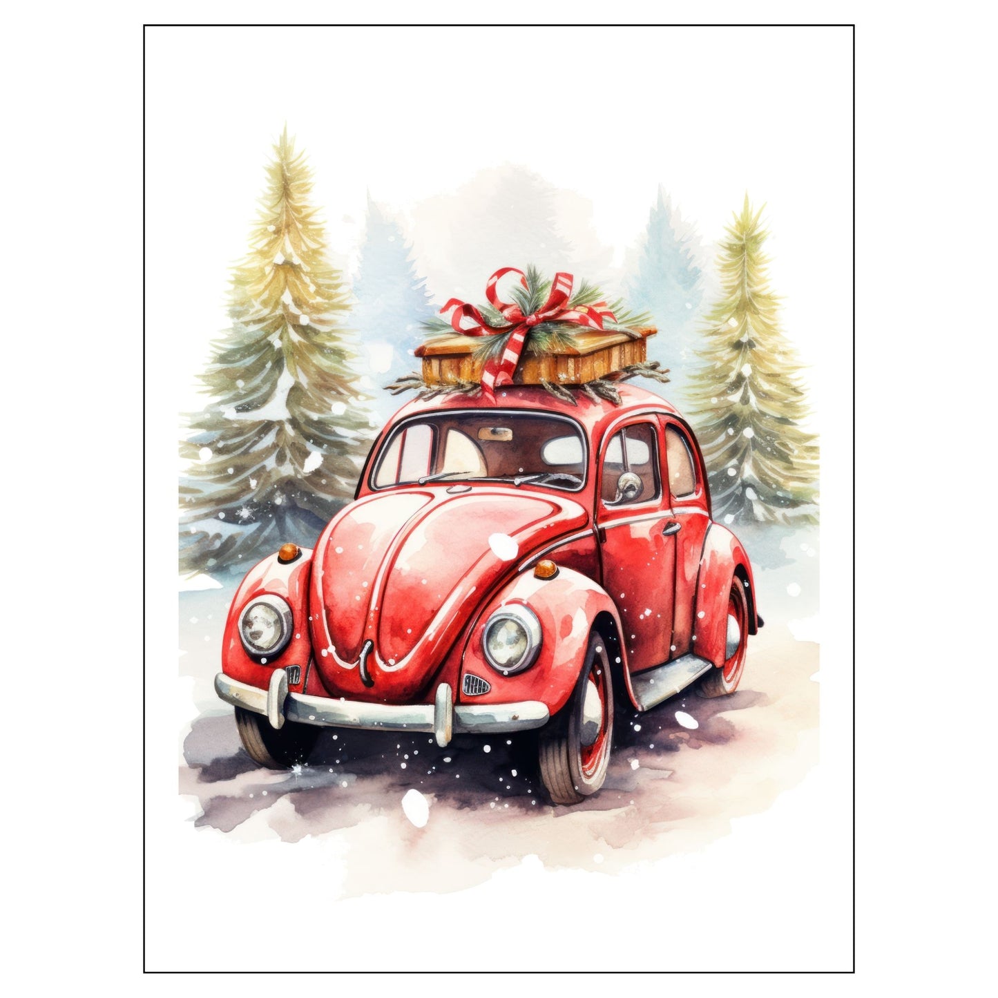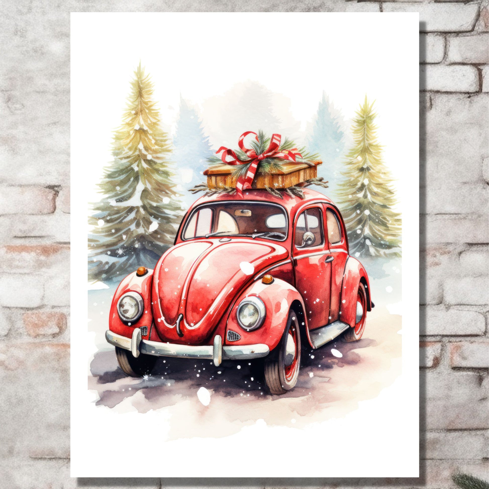 JULEMOTIV RØD BIL No13 - PLAKAT OG LERRET