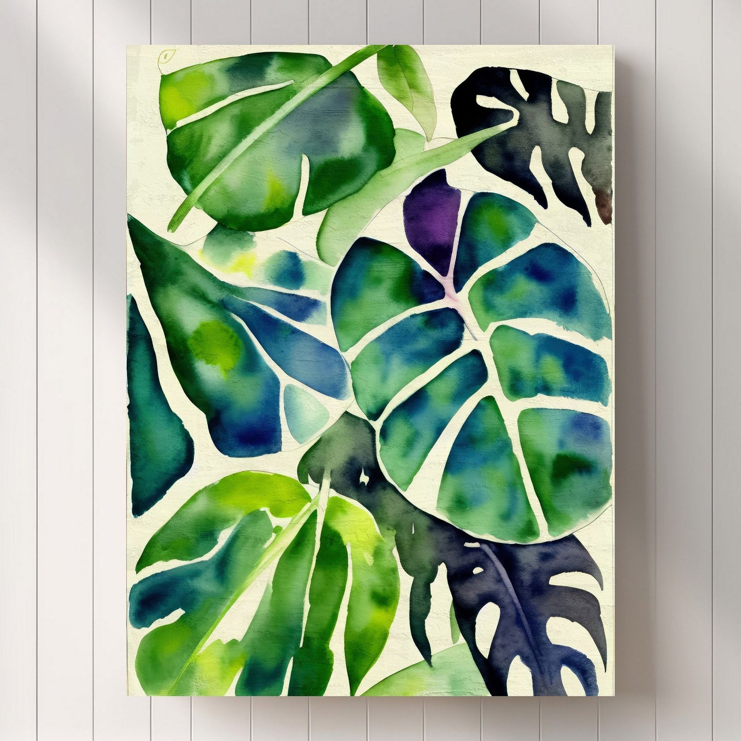 Monstera plakat og lerret - fargerike akvarellblader som livner opp hjemmet