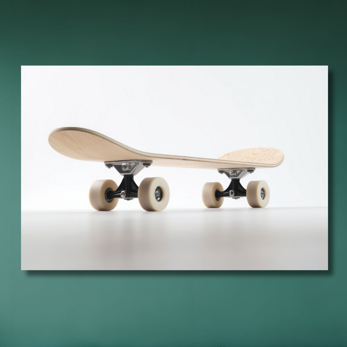 Oppdag den unike sjarmen med vår "Skateboard" plakat og lerret, en grafisk fremstilling av et skateboard i lys eik