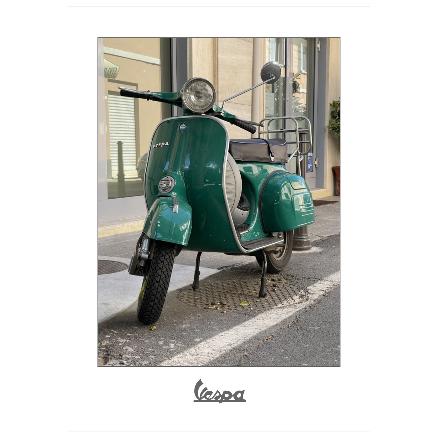 Denne Vespa'en stod parkert i en av de koselige gatene i Nizza Monferrato, Piemonte, Italia. Som plakat blir den et blikkfang på veggen!